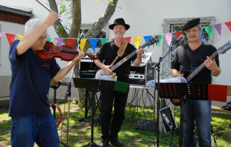 3 strahlende Gesichter 2010 vor dem neuen Bandbanner